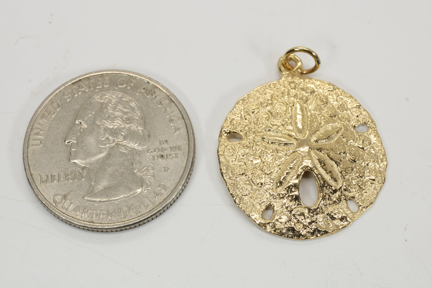 Large Real Gold Sand Dollar Necklace made in solid 14kt gold