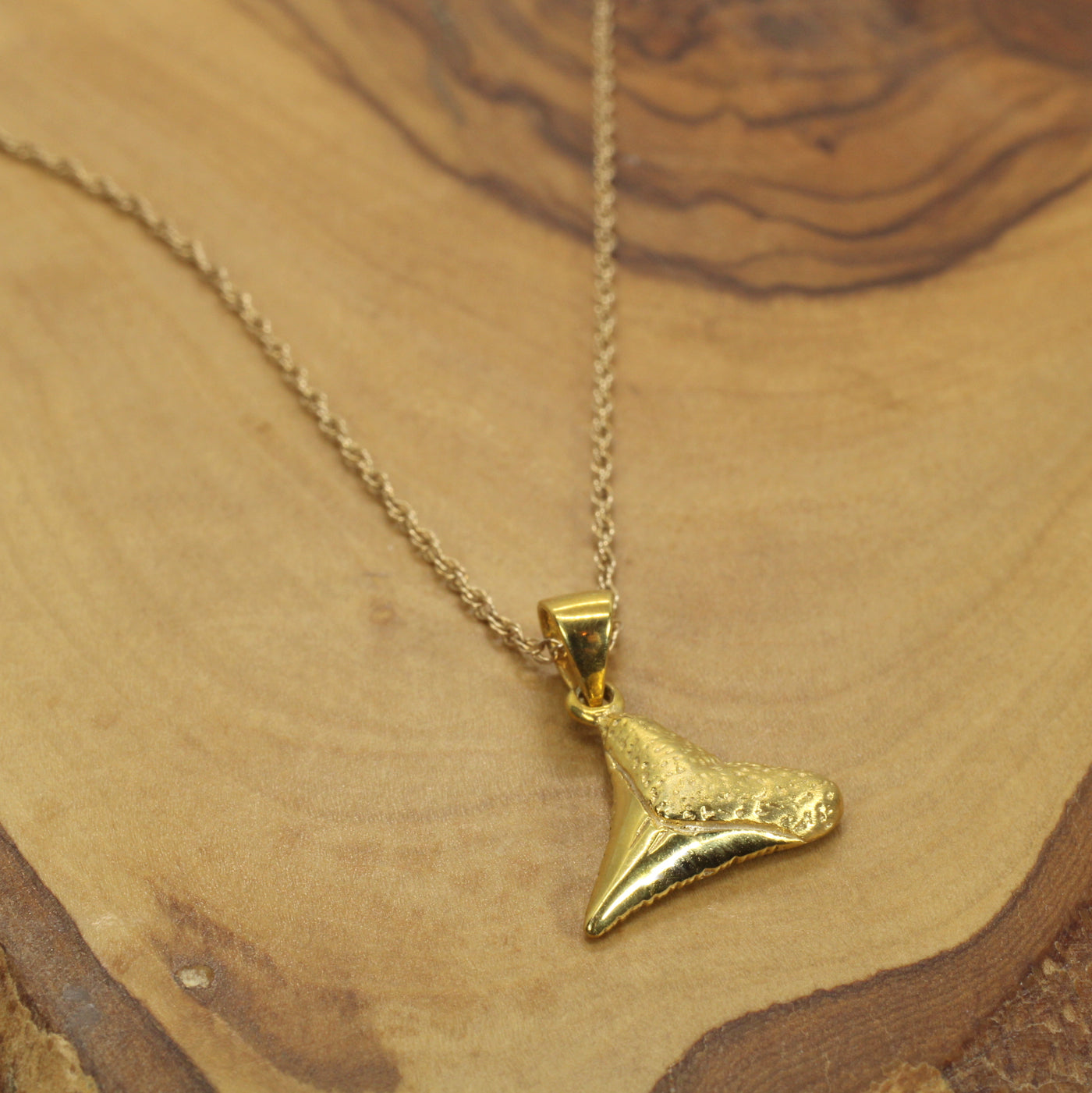 Small Gold Shark Tooth Necklace for him or her made in 14kt gold vermeil
